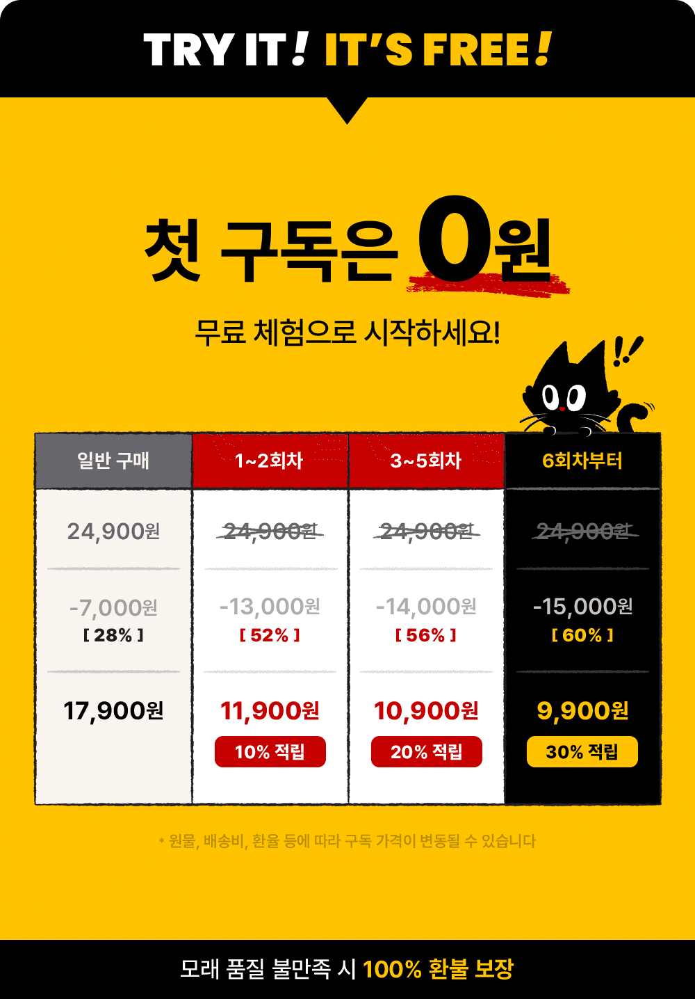 구독 제품의 원물가 상승에 의해 추후 구독 가격이 변경될 수 있습니다.