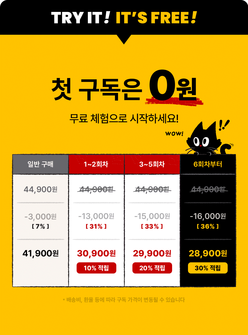 구독 제품의 원물가 상승에 의해 추후 구독 가격이 변경될 수 있습니다.