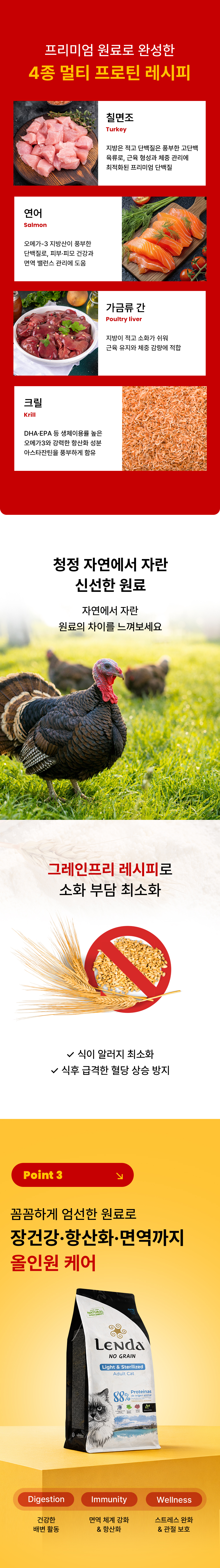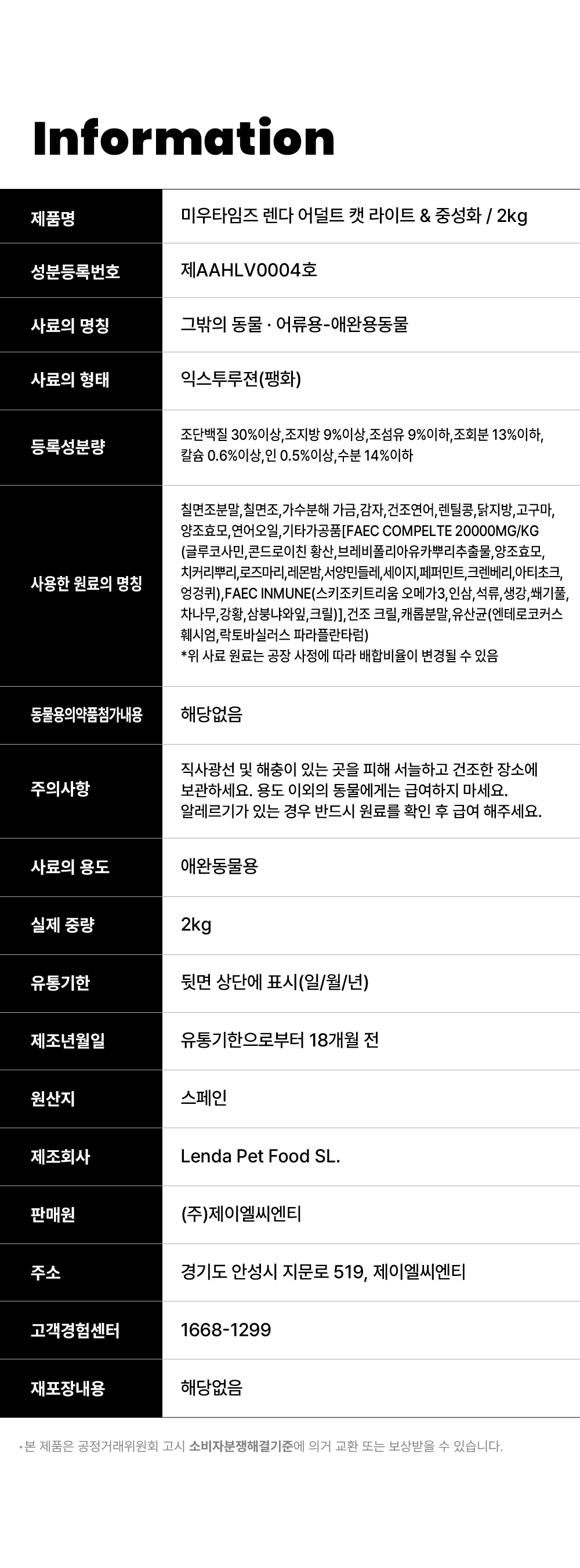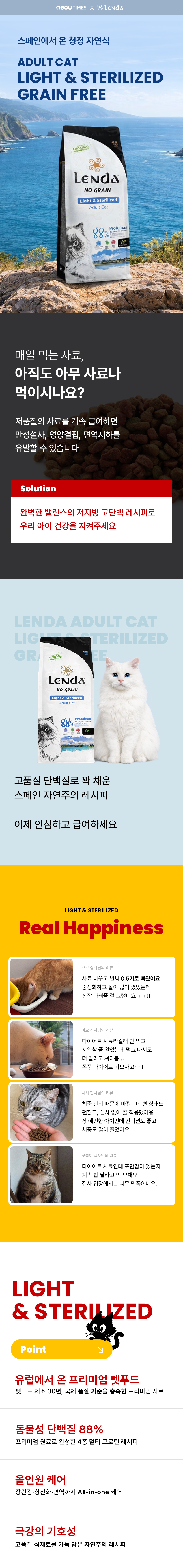 렌다 어덜트 캣 라이트 & 중성화 그레인프리 / 2kg