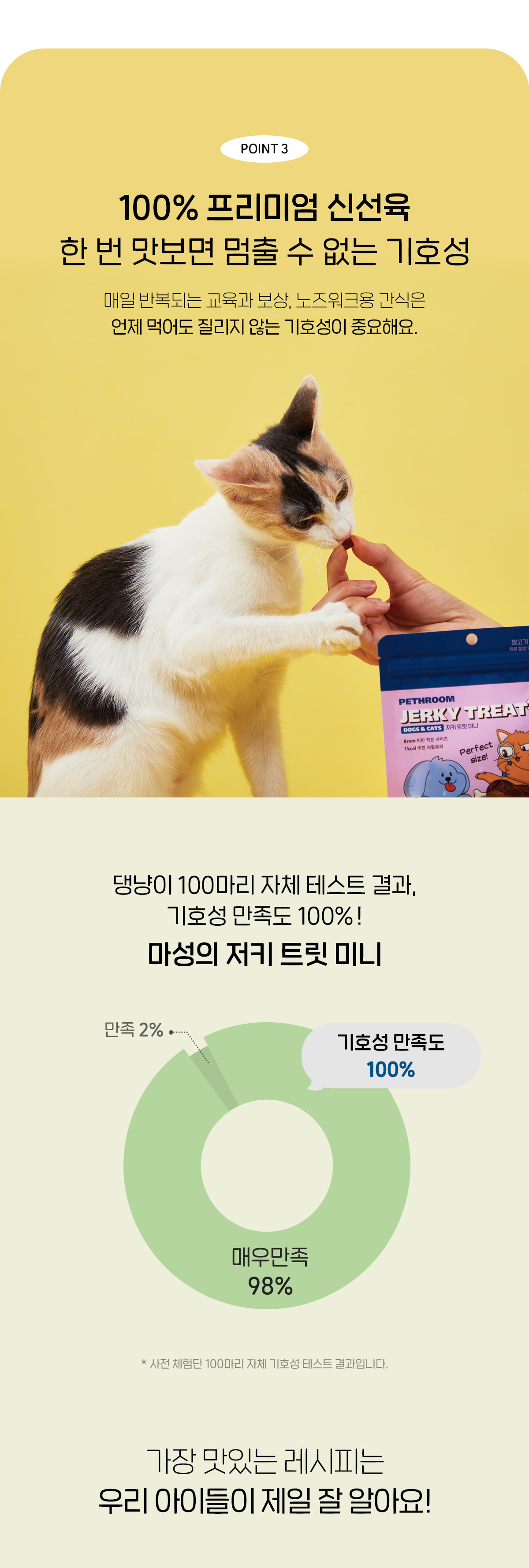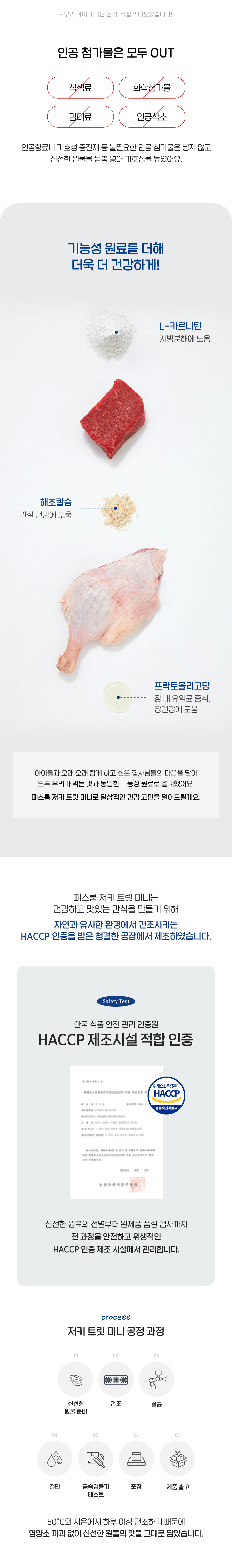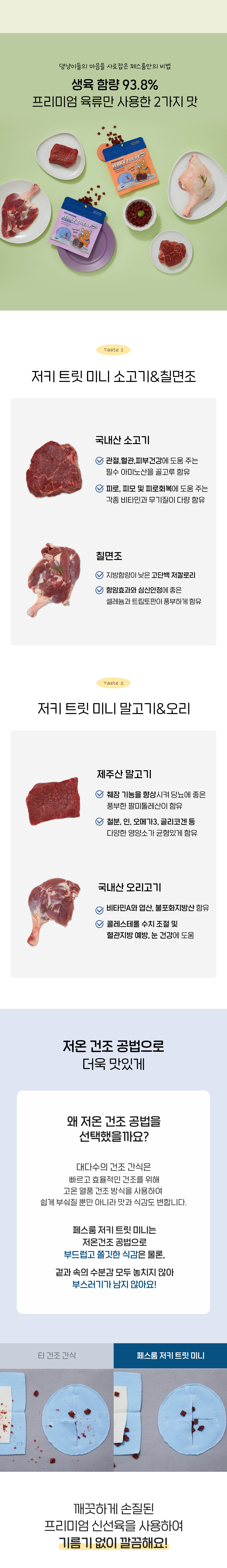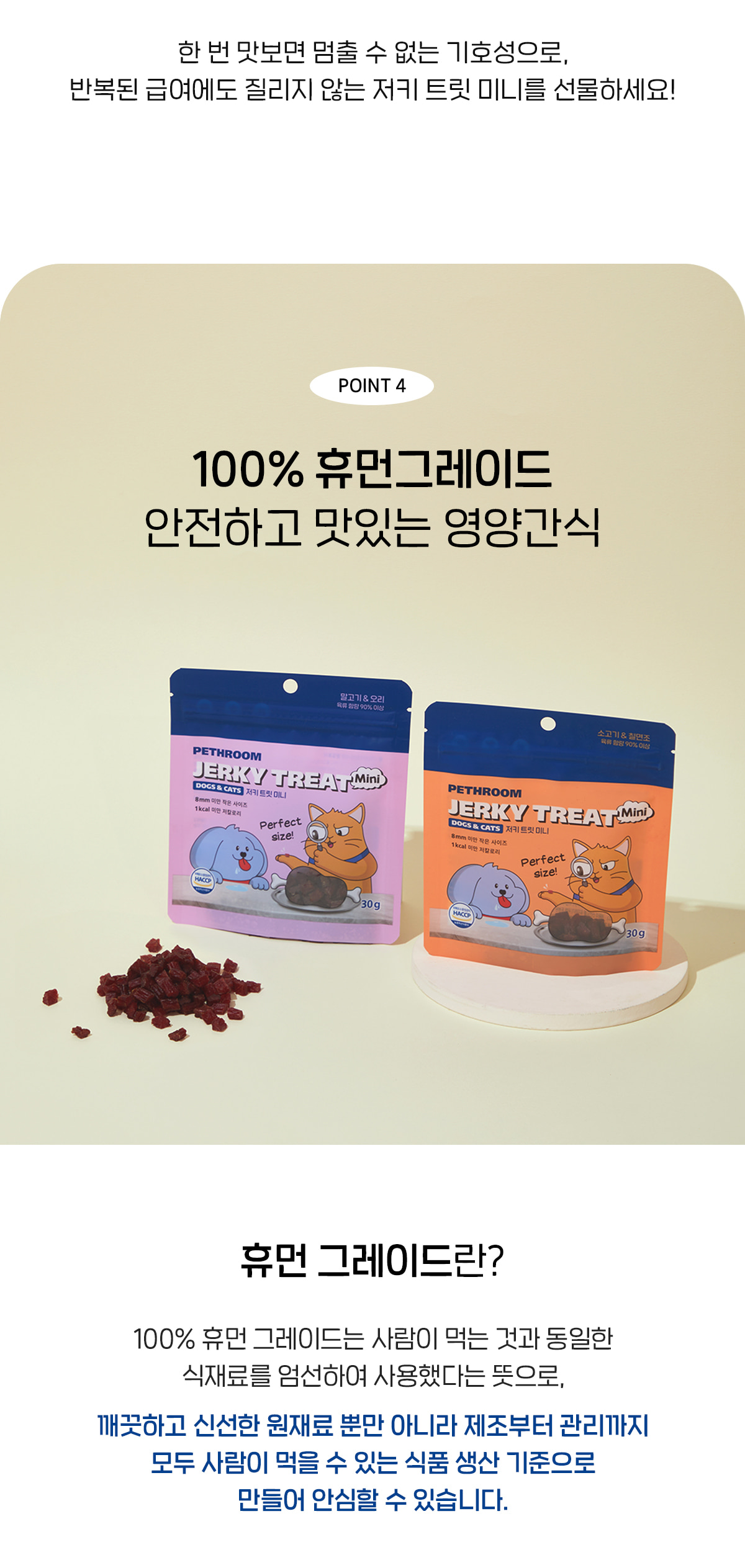 초미니 사이즈에 가벼운 칼로리, 100% 프리미엄 생육 간식 저키 트릿 미니
