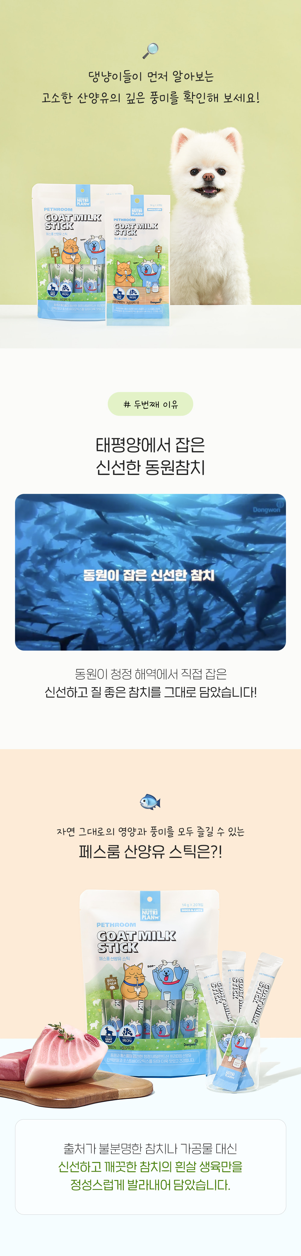 태평양에서 잡은 신선한 참치에 청정 네덜란드 산양유 단백분말을 더했다! 간편하게 음수량 보충이 가능한 영양만점 산양유 스틱