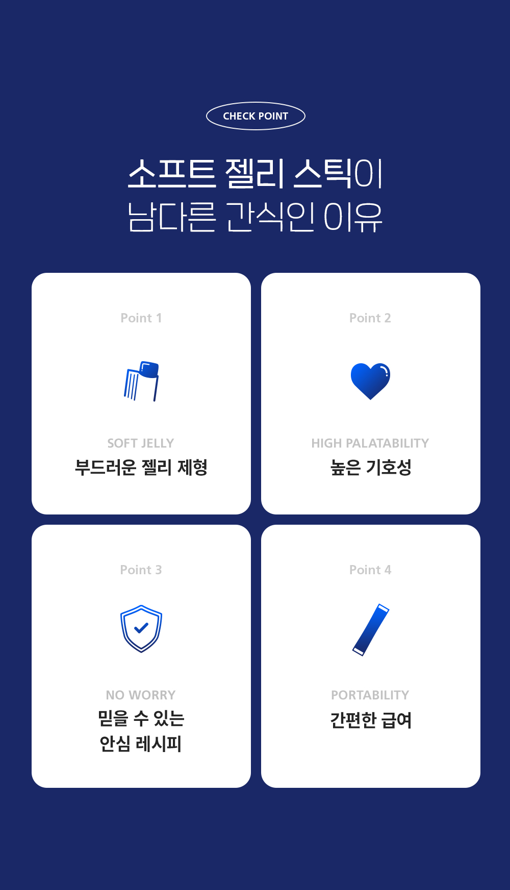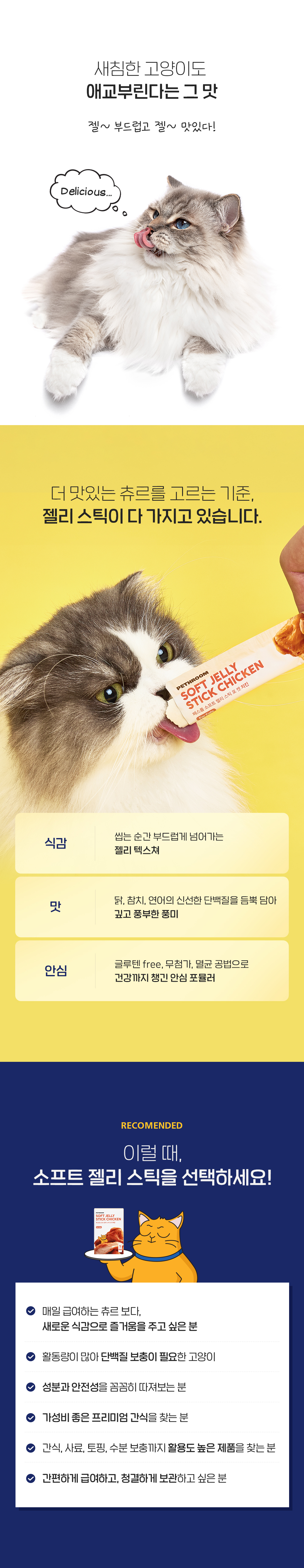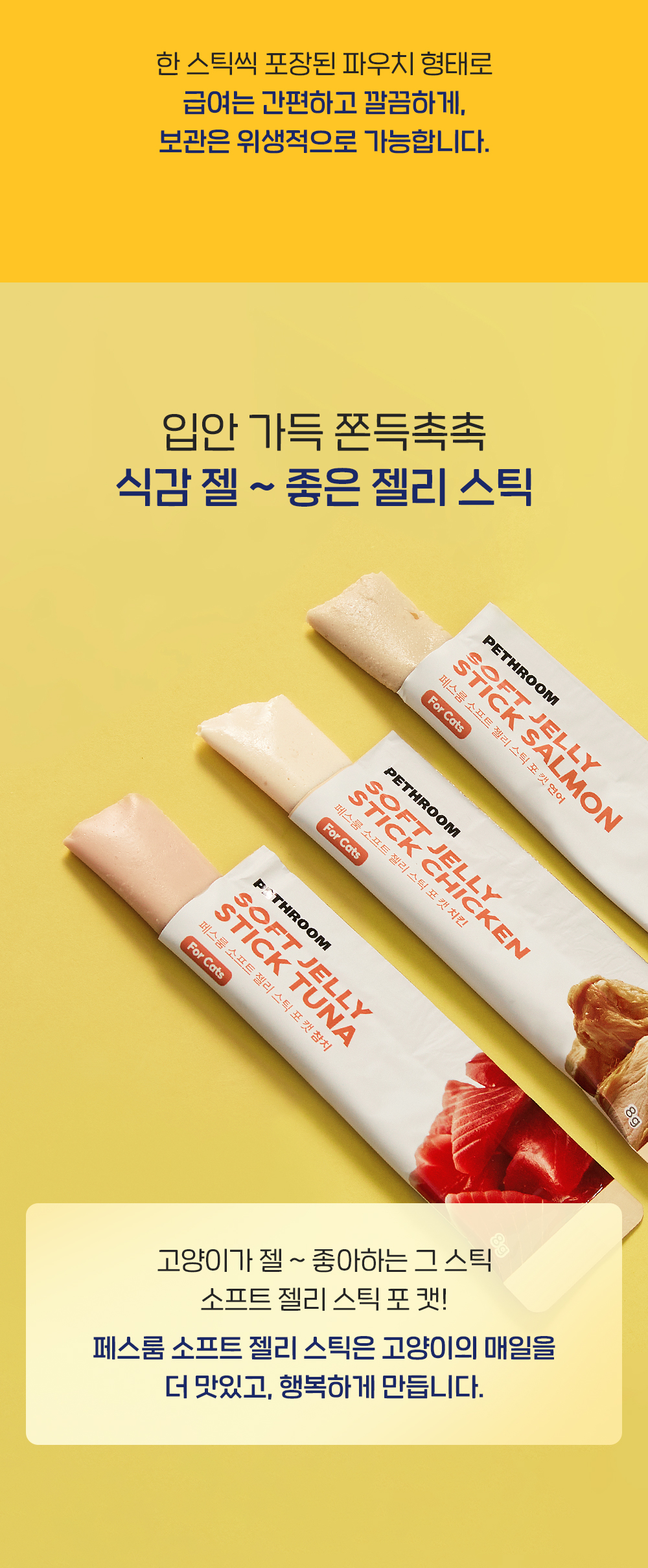 기호성 좋은 쫀득 촉촉 젤 타입, 휴대가 용이한 츄르 형태의 젤리스틱 간식